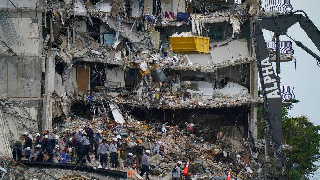 Desde el súbito derrumbe de la Champlain Towers South de 12 pisos la semana pasada en Surfside, los rescatistas han estado trabajando para retirar capas de concreto sin alterar la inestable pila de escombros.