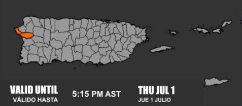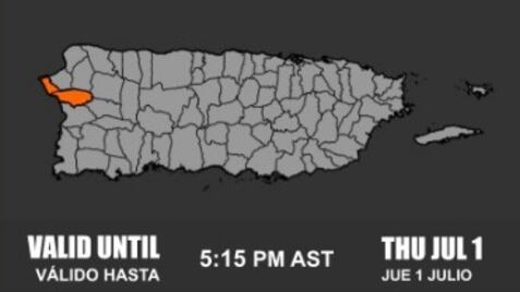 El Servicio Nacional de Meteorología (SNM) en San Juan ha emitido el jueves, una advertencia de inundaciones urbanas y de pequeños arroyos para varios municipios de la zona oeste.