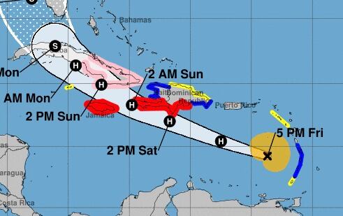 Se espera que el debilitamiento lento comience el sábado por la noche o el domingo cuando Elsa pasa cerca o sobre las Antillas Mayores.