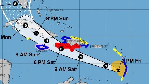 Se pronostica que Elsa se mueva sobre las islas de Barlovento durante las próximas horas, atraviese el caribe al sur de Puerto Rico y se mueva hacia el sur cerca de Jamaica y porciones del este de Cuba.