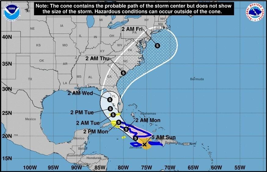 En Jamaica, el Servicio Meteorológico de Jamaica ha informado de intensas lluvias y tormentas con aparato eléctrico. “Es probable que haya inundaciones repentians en zonas bajas con entre 7 y 15 centímetros de lluvia”, ha indicado el organismo. “También se esperan fuertes vientos con fuerza casi de tormenta tropical para las próximas 6-12 horas”, ha añadido.