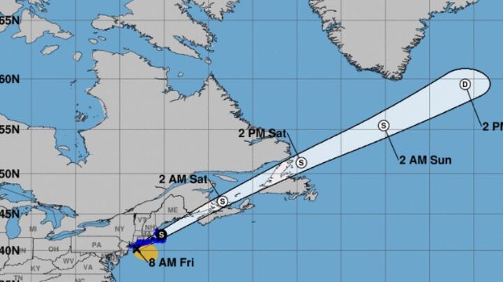 El centro de huracanes dijo que se esperaban precipitaciones totales de 5 a 10 centímetros (2 y 4 pulgadas) hasta el viernes en los estados del este del Atlántico medio y en Nueva Inglaterra.