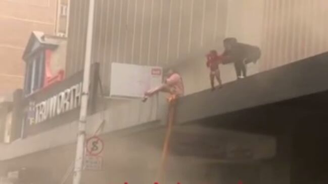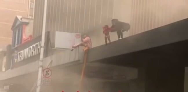 En el video viralizado en redes sociales se ve cómo la mujer decide lanzar a su hija mientras un grupo de personas abajo logra sostenerla.