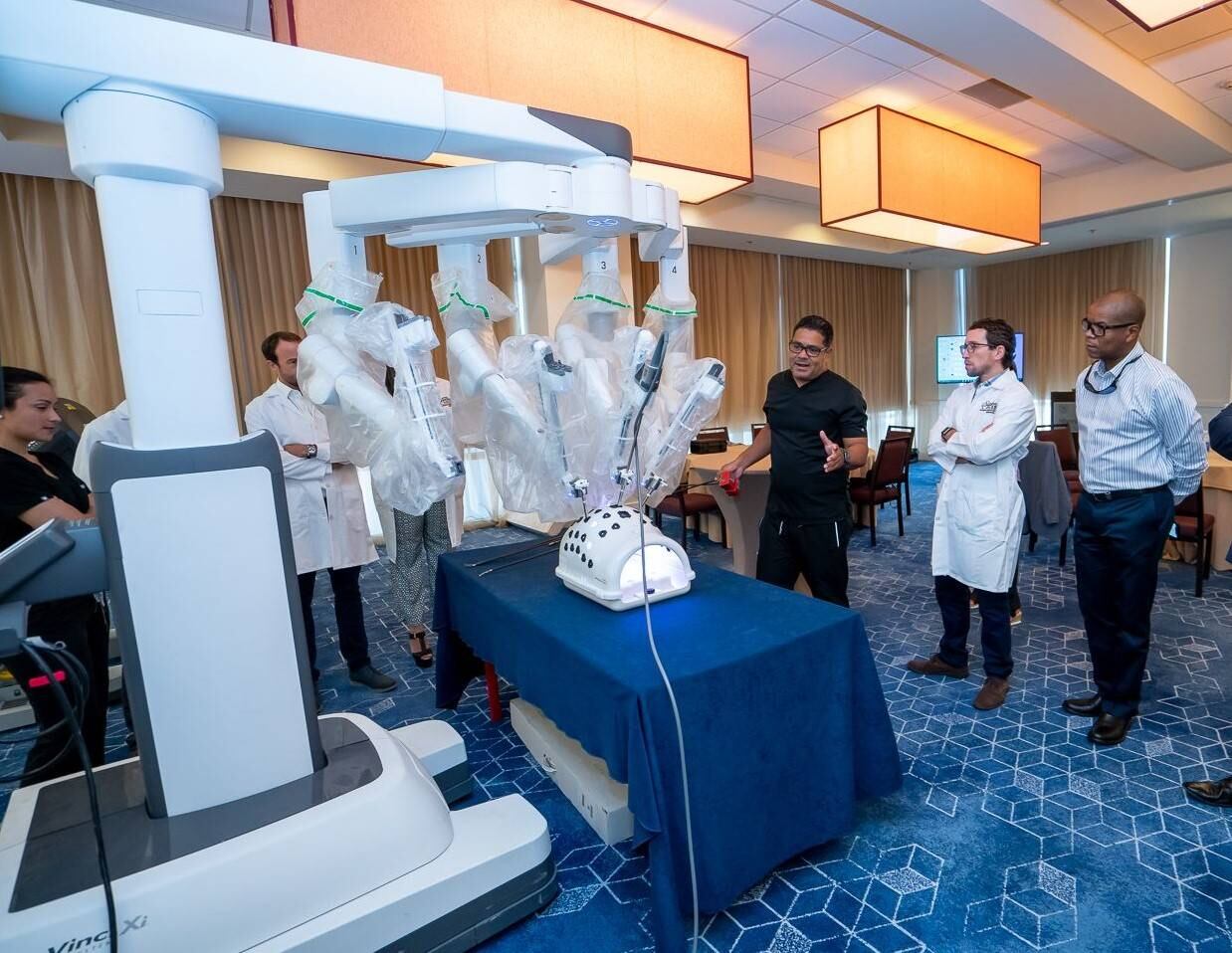El cirujano Dr. William Méndez Latalladi, director del Departamento de Cirugía de la Escuela de Medicina del Recinto de Ciencias Médicas, explicó que “la cirugía robótica asistida mediante el da Vinci Xi permite realizar operaciones complejas y proporciona una excelente calidad asistencial y una máxima precisión en los movimientos que realiza el cirujano. Con la adquisión del robot da Vinci, en el Hospital del Centro Comprensivo de Cáncer UPR, le permite a los cirujanos en formación una práctica constante, para su adiestramiento y especialización en los avances de la tecnología robótica y no es necesario entrenar fuera de PR. Este esfuerzo es parte de una alianza colaborativa con el Centro Comprensivo de Cáncer UPR y Departamento de Cirugía de la Escuela de Medicina del Recinto de Ciencias Médicas UPR”.