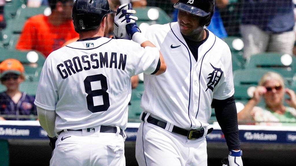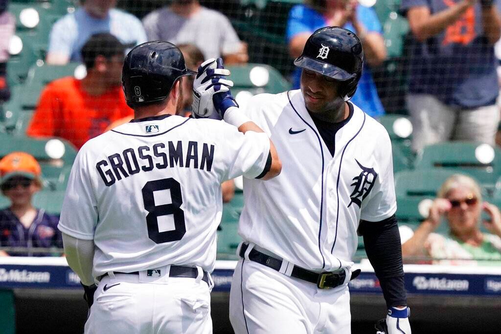 Robbie Grossman inició con un jonrón y cuatro lanzadores de Detroit se combinaron para conceder dos hits sin carreras para que los Tigres vencieran a los Mellizos de Minnesota en el primer juego de una doble jornada el sábado.