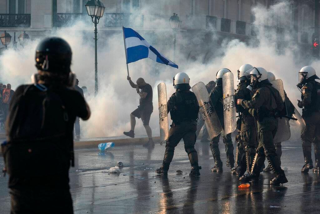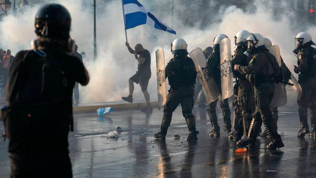 La policía utilizó gas lacrimógeno y cañones de agua para dispersar a los manifestantes que se reunieron el miércoles en Atenas para oponerse a los requisitos de vacunación contra el COVID-19 propuestos por el gobierno griego.
