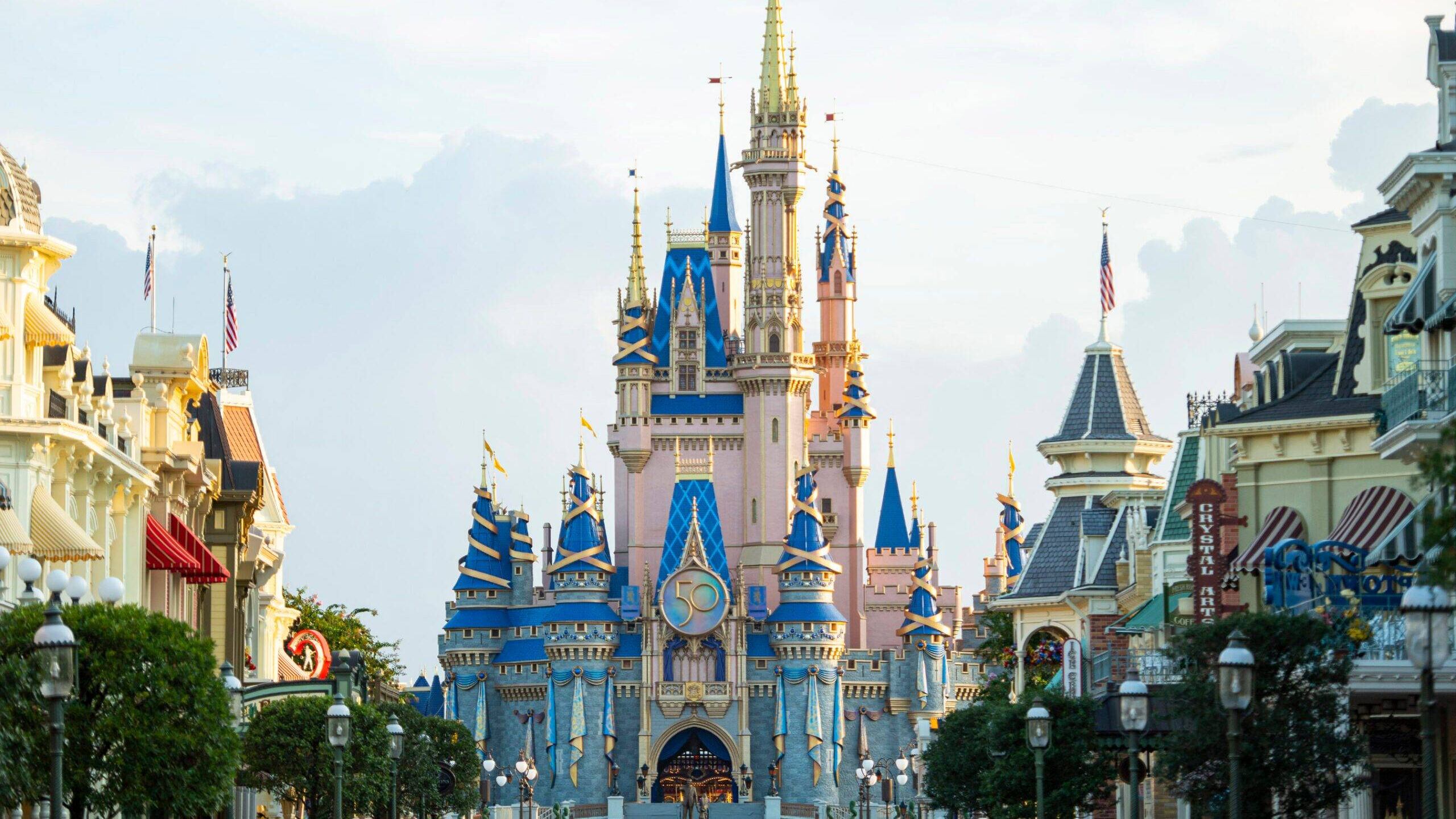 Un nuevo escudo en honor al 50 aniversario de Walt Disney World adorna desde hoy, viernes, el icónico Castillo de Cenicienta en el Parque Magic Kingdom.