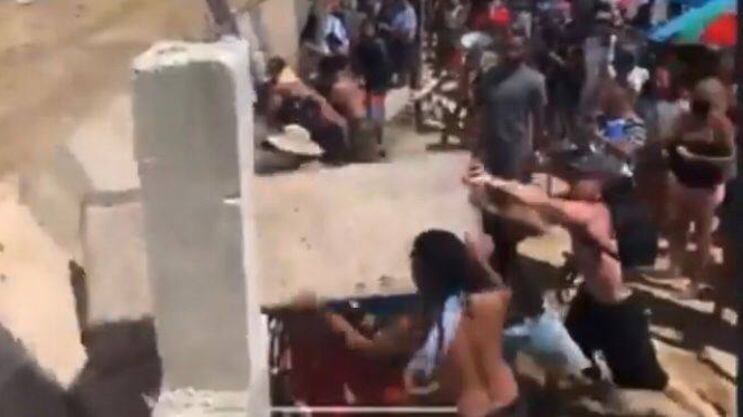 Múltiples manifestantes derribaron el sábado parte del muro en construcción del condominio Sol y Playa en Rincón.
