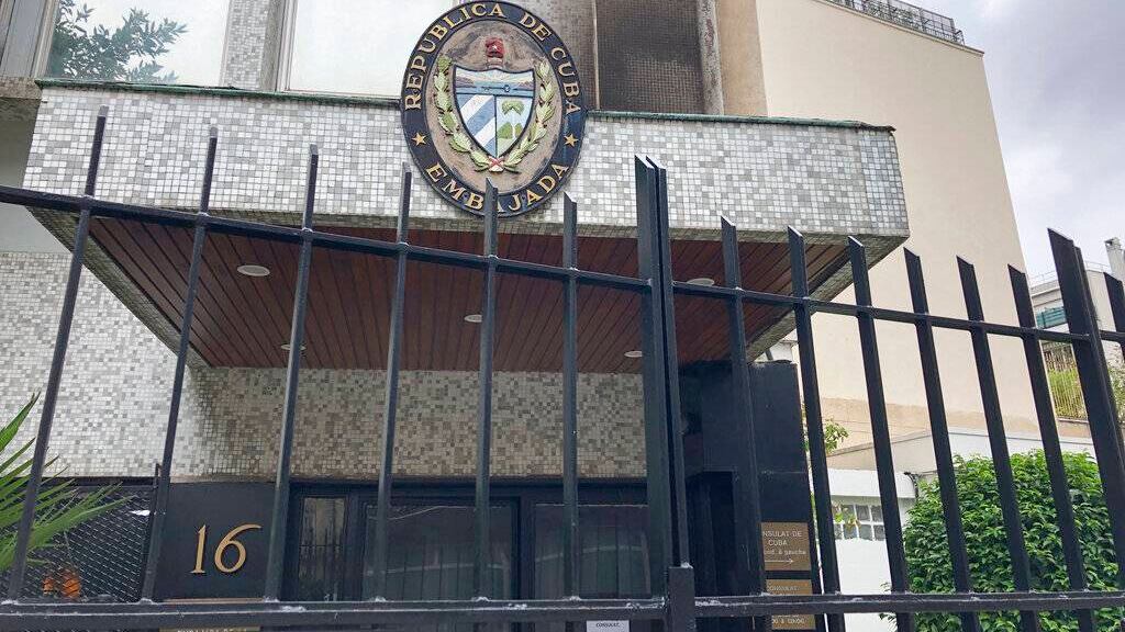 El Centro de Prensa Internacional del Ministerio de Relaciones Exteriores de Cuba indicó que se habían arrojado tres bombas incendiarias, de las que dos impactaron contra la embajada y provocaron un fuego. Diplomáticos cubanos apagaron las llamas mientras policías y bomberos llegaban al lugar, añadió.