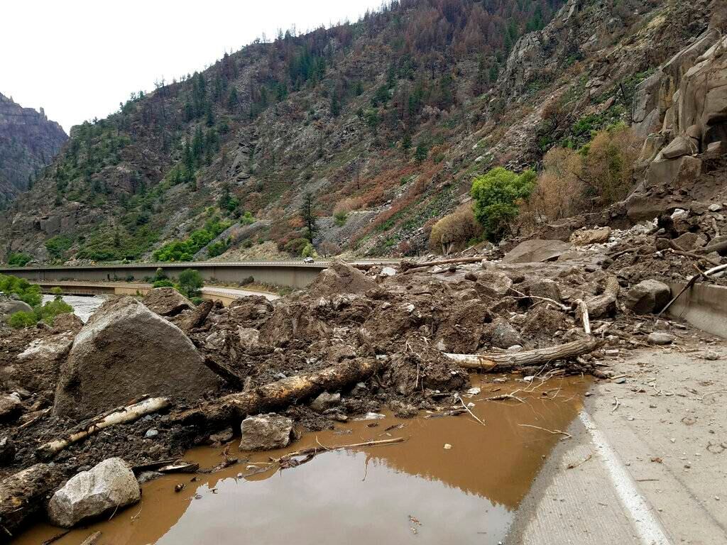 La Interestatal 70 en Glenwood Canyon, Colorado, fue cerrada sin fecha probable de reapertura después de ser golpeada por inundaciones súbitas durante tres días. Los carriles en ambas direcciones permanecían cerrados a causa de los escombros que fueron arrastrados desde las zonas calcinadas por un incendio el año pasado en el área de Grizzly Creek.