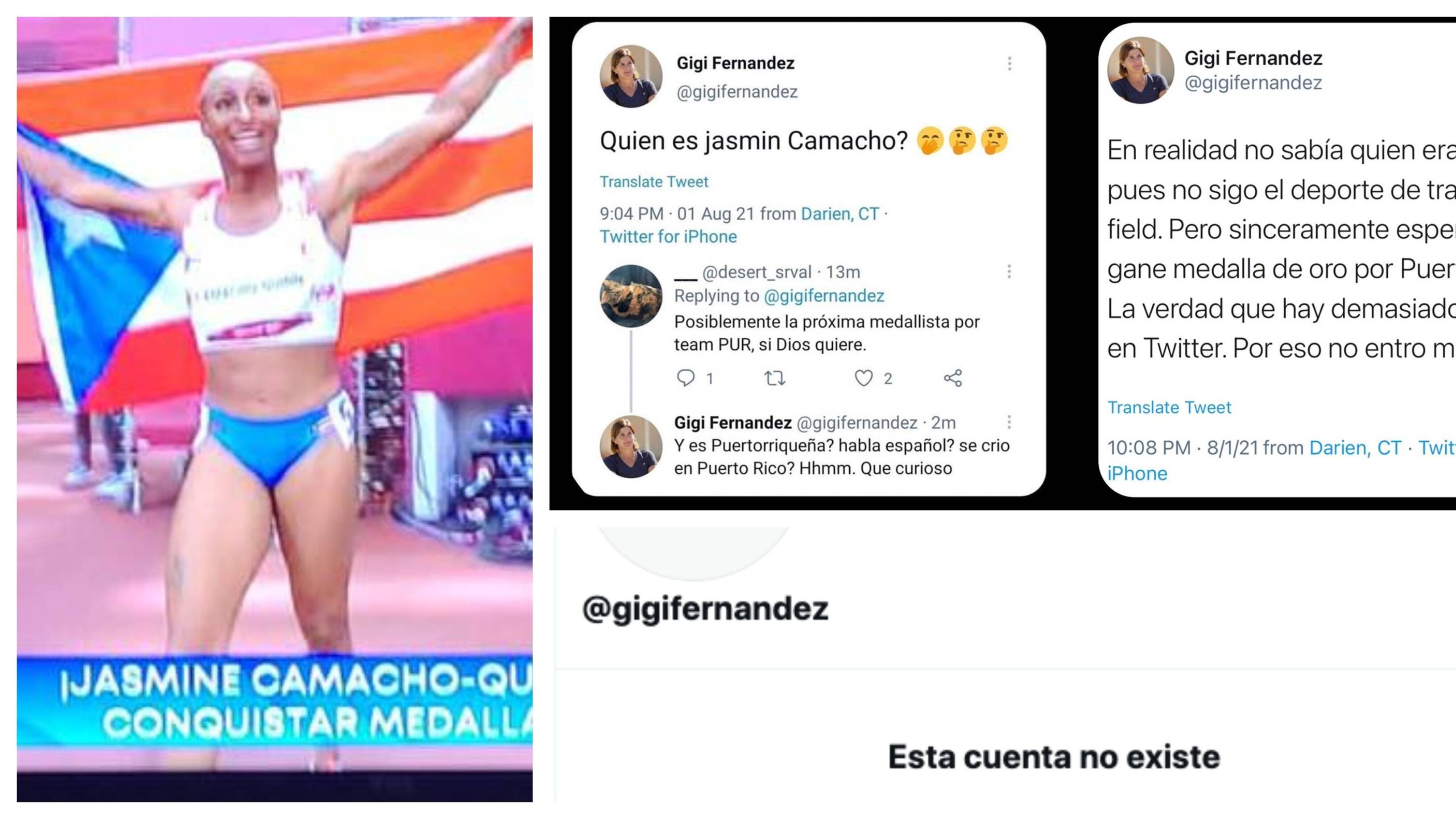 Luego, borró el tuit indicando que “en realidad no sabía quién era Jasmin pues no sigo el deporte de track and field. Pero sinceramente espero que gane medalla de oro por Puerto Rico. La verdad que hay demasiados haters en Twitter. Por eso no entro mucho”.