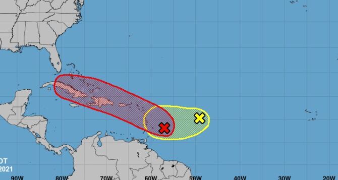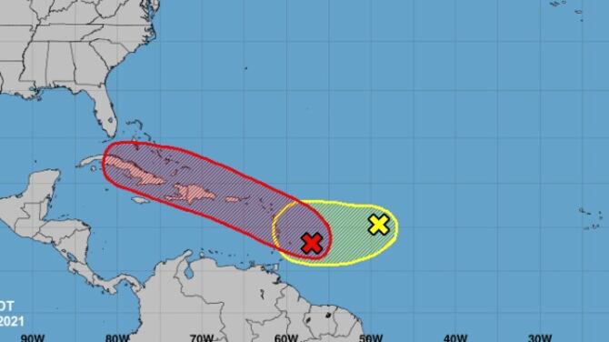 Según el último boletín, un sistema de baja presión, ubicado a 150 millas del este de Barbados se moverá hacia el oeste-noroeste, hacia las Islas Vírgenes y Puerto Rico. La actividad de lluvia asociada con la baja presión se aproximará desde martes en la mañana hasta el miércoles.