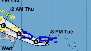 Se espera que la perturbación pase cerca de la costa sur de Puerto Rico esta noche y la madrugada del miércoles, esté cerca o sobre Hispaniola el miércoles, y estar cerca del sureste de Bahamas y las Islas Turcas y Caicos el jueves.