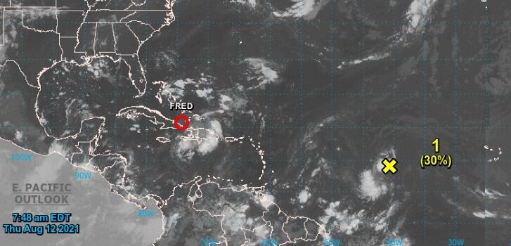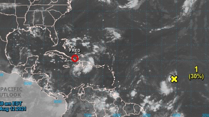 En la madrugada del jueves, el vórtice de Fred estaba a 1055 kilómetros (65 millas) al sur-suroeste de la isla Gran Inagua, Bahamas, y avanzaba en dirección oeste-noroeste a 26 km/h (16 mph), según el Centro Nacional de Huracanes de Estados Unidos. Tenía vientos máximos sostenidos de 55 km/h (35 mph).