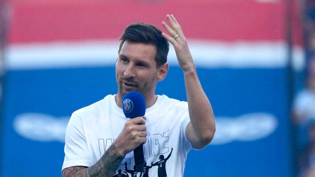 Lionel Messi sonrió de pie, aparentemente embelesado mientras los hinchas del Paris Saint-Germain coreaban su nombre.
