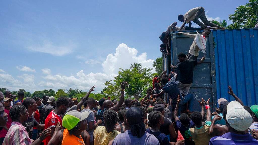 Numerosos haitianos hambrientos y sin hogar tras un devastador terremoto se aglomeraron el viernes alrededor de camiones de asistencia y en algunos casos robaron artículos que les urgen, en medio de apuros de las autoridades para coordinar la entrega de ayuda e impedir que se repita su caótica respuesta a una tragedia similar hace 11 años.
