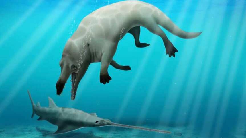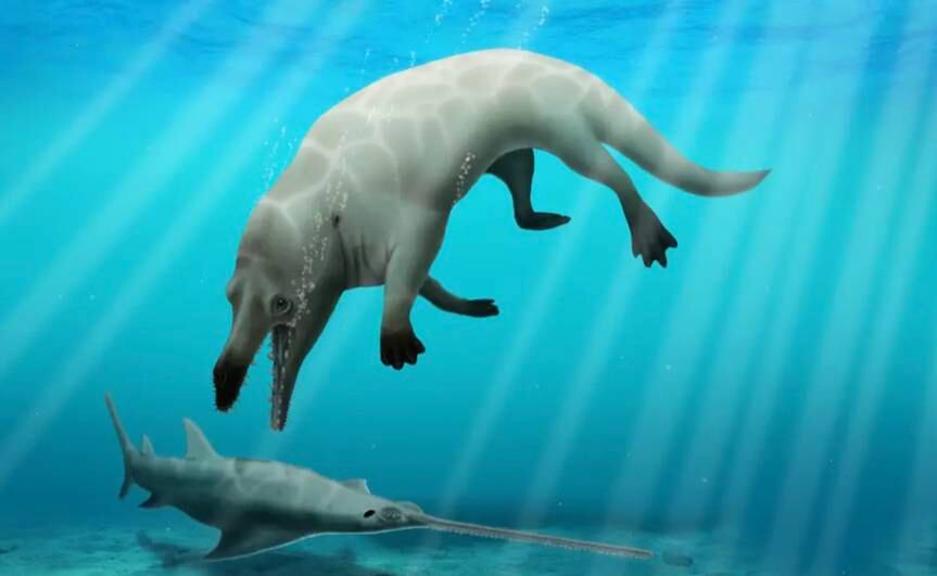 Científicos en Egipto han descubierto el fósil de 43 millones de años de una especie de ballena de cuatro patas que caminaba por la tierra y nadaba en el agua.