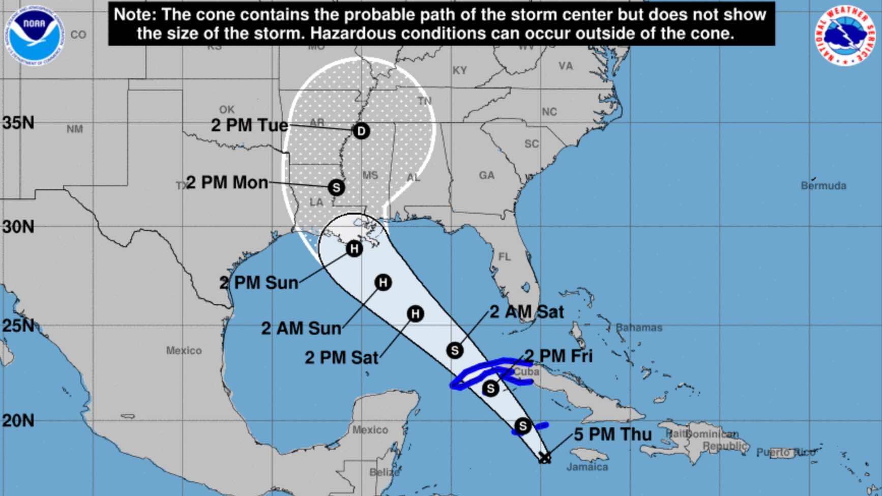 Ida podría convertirse en huracán cuando se acerque al oeste de Cuba y al sureste del Golfo de México el viernes, y alcanzar fuerza de categoría 3 o mayor para cuando se encuentre en la costa norte de Estados Unidos en el golfo el domingo, señaló el servicio. La costa central del territorio estadounidense en el Golfo podría empezar a registrar lluvias por la tormenta el domingo por la mañana.