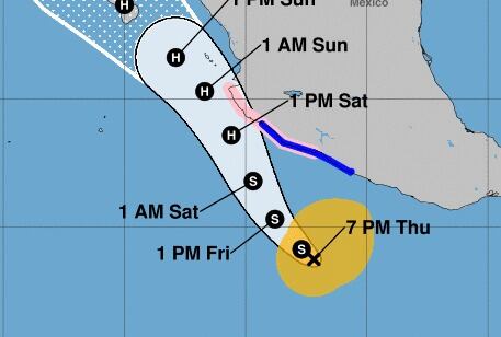 El NHC señaló que la tormenta podría dejar de 20 a 30 centímetros (8 a 12 pulgadas) de lluvia en la costa mexicana, con hasta 50 centímetros (20 pulgadas) en zonas aisladas, así como fuerte oleaje.