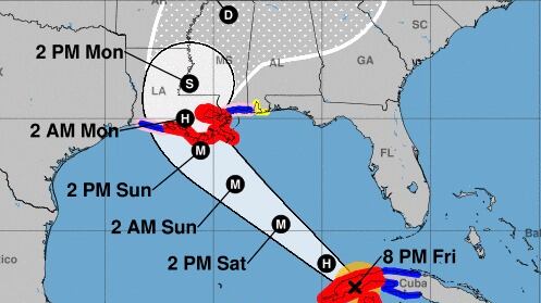 Se emitió un aviso de huracán que va desde Cameron, Luisiana, hasta los límites entre Mississippi y Alabama, incluyendo Lake Pontchartrain, Lake Maurepas y la zona metropolitana de Nueva Orleans.