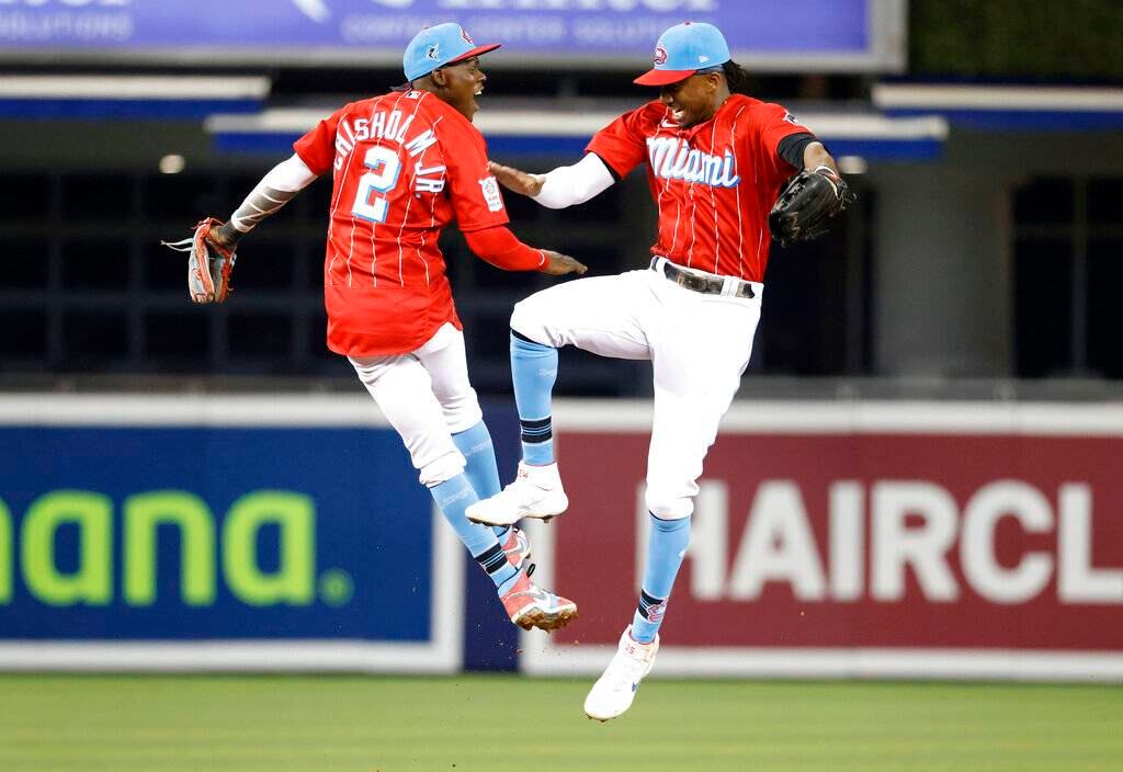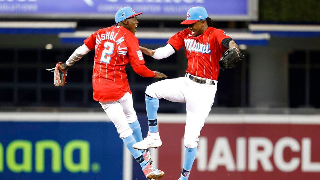 El dominicano Bryan de la Cruz inauguró el inning con un doble y anotó en un sencillo del venezolano Miguel Rojas. Bradley ponchó a Jazz Chisholm Jr. y al venezolano Jesús Aguilar, antes de que Brinson saliera de una racha en que se había ido de 9-0.