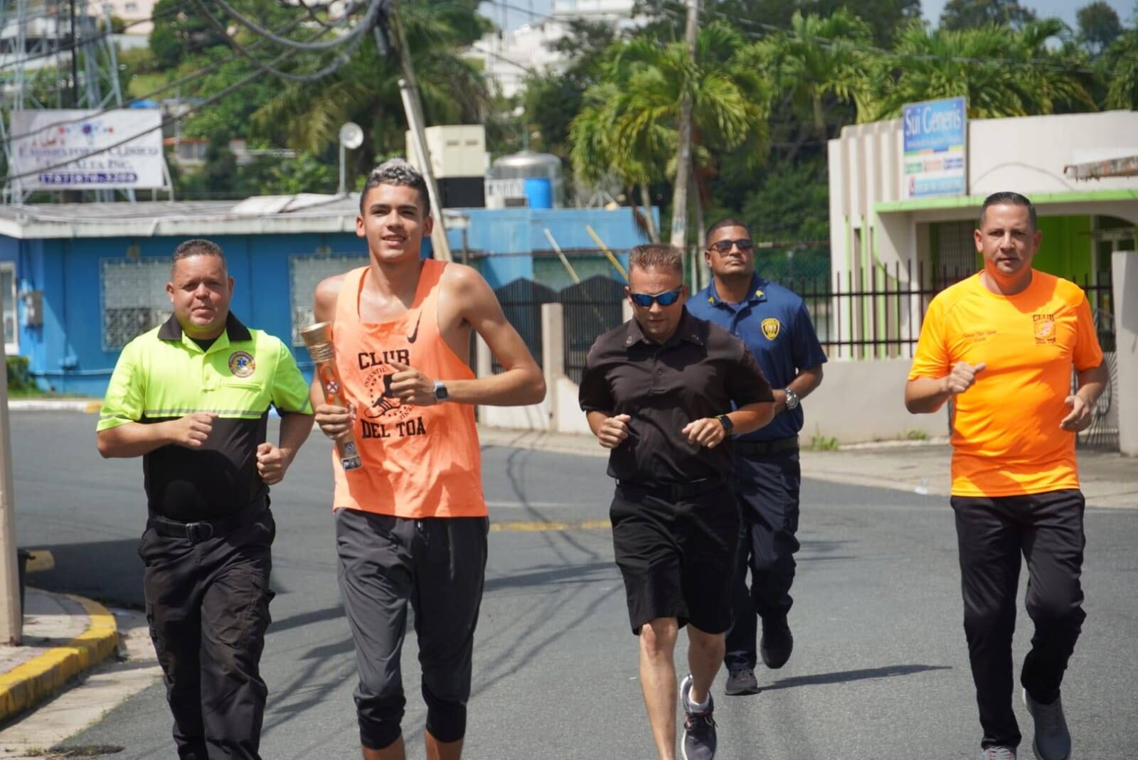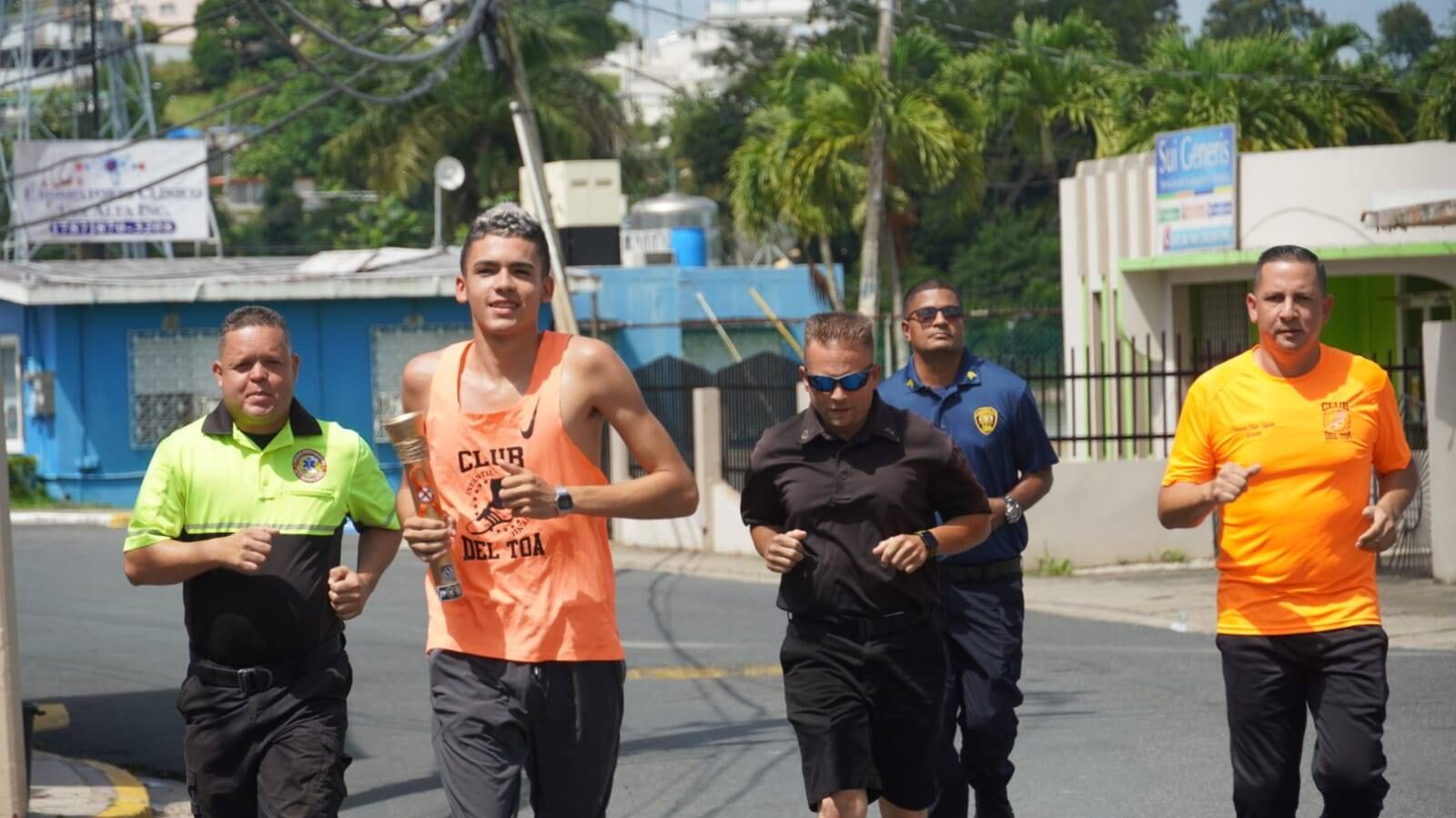 Junto al alcalde corrieron el joven atleta del Club del Toa Derick Ortega, el paramédico y rescatista Luis Vélez, el policía municipal Ángel Flores y el bombero sargento Daniel Colón.