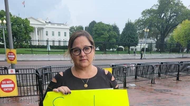La cabildera por la estadidad Melinda Romero Donelly se unió hoy, jueves, a la manifestación que convocó el exgobernador Ricardo Rosselló Rosselló que consiste de pararse frente a la Casa Blanca por 51 días para exigir la estadidad.