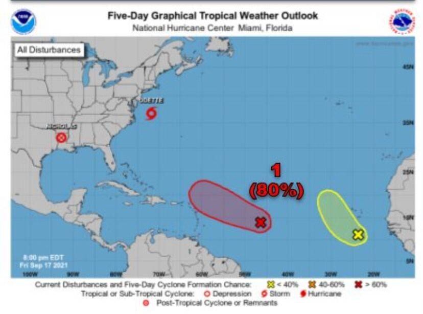 La onda tropical, con 80 por ciento de probabilidad de formación para las próximas 48 horas y cinco días, pudiera traer aguaceros y tronadas para Puerto Rico entre el lunes y martes.