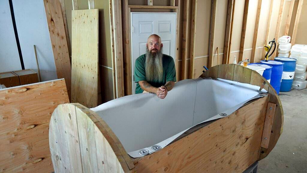 Él y uno de sus empleados han construido un recipiente que esperan marque el comienzo de una era más ecológica de la ciencia mortuoria que incluya la descomposición orgánica natural de los restos humanos, también conocida como compostaje humano.