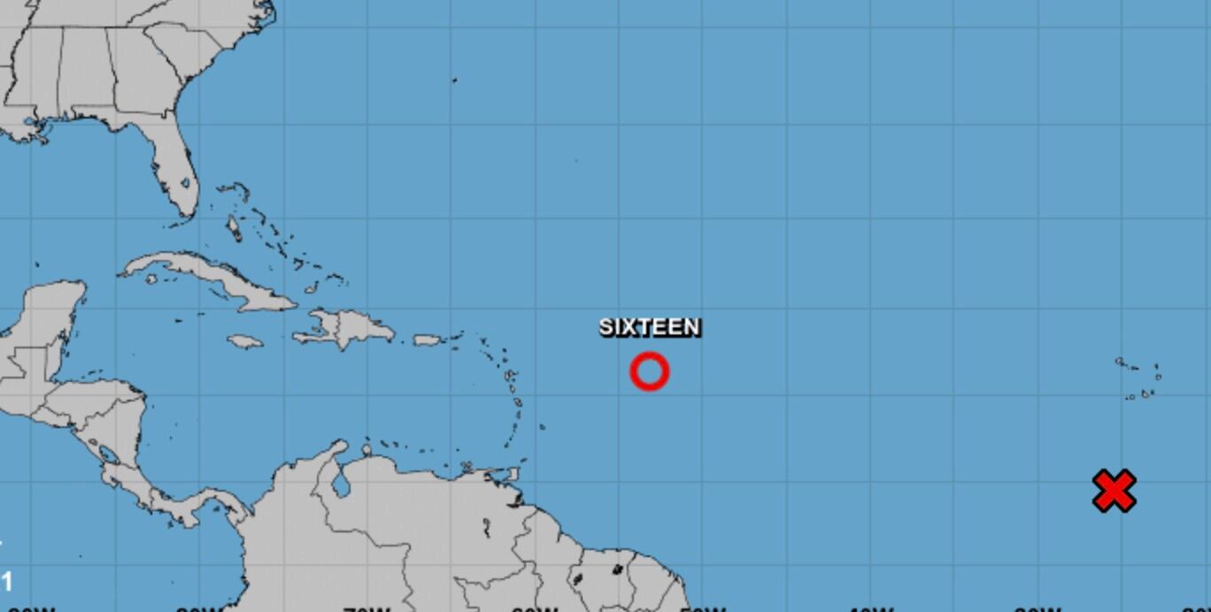 El Centro Nacional de Huracanes (CNH) informó el sábado en la noche que se formó la depresión tropical #16 a unas 670 millas al este de las Islas de Sotavento del Norte.