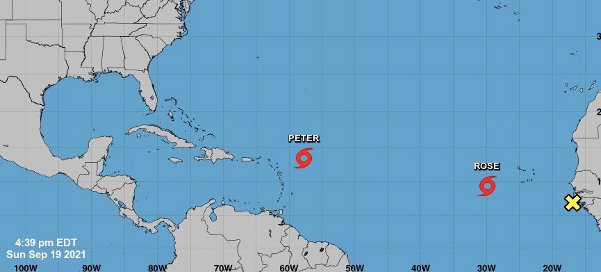 Ni Peter, ni Rose requirieron al momento que se emotiese algún aviso o vigilancia. Lo que sí se anticipa para Puerto Rico son lluvias. “Las bandas exteriores al sur de la tormenta tropical podrían producir totales de lluvia de 1 a 3 pulgadas con cantidades mas altas localmente a través de porciones del norte de las Islas de Sotavento, incluyendo las Islas Vírgenes, así como Puerto Rico hasta el martes. Esta lluvia pudiera resultar en áreas de inundaciones urbanas y de riachuelos”, lee uno de los documentos meteorológicos.