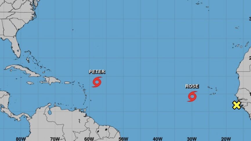 El Centro Nacional de Huracanes emitió un boletín en el que ya se nombra la decimoséptima tormenta de la temporada, llamada Rose. Este sistema viene detrás de la tormenta Peter, cuyo paso al Norte de las Antillas debe dejar lluvias en Puerto Rico.