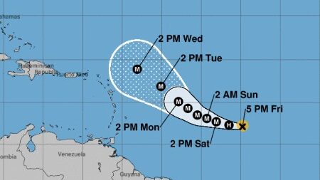 Sam se está moviendo hacia el Oeste cerca de 12 millas por hora (mph) y se espera que este movimiento continúe con una disminución gradual de la velocidad de avance y gire hacia el oeste-noroeste durante el fin de semana.