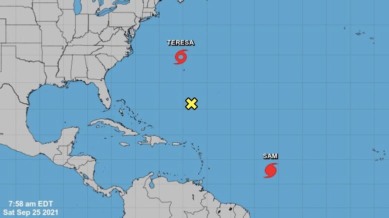 El huracán Sam podría ganar fuerza el sábado hasta convertirse en un peligroso meteoro mientras que la tormenta subtropical Teresa se debilitaba y podría disiparse el domingo, según los meteorólogos.