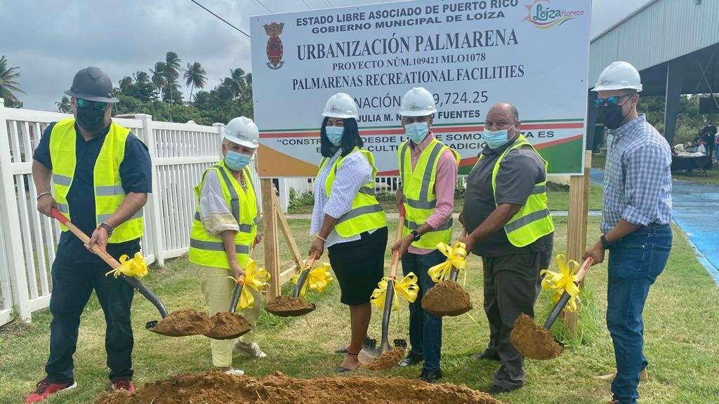 La alcaldesa de Loíza, Julia Nazario Fuentes, realizó la ceremonia de primera piedra de dos nuevos proyectos de reconstrucción de facilidades deportivas en las comunidades de Piñones y Palmarenas, que serán financiados con fondos de la Agencia Federal para Manejo de Emergencias (FEMA).