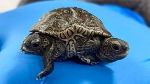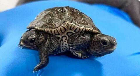 La tortuga espalda de diamante es una especie amenazada en el estado, y este ejemplar bicéfalo se está alimentando bien de gusanos y comida preparada, de acuerdo con el personal del centro. Las dos cabezas operan de manera independiente, saliendo a tomar aire en momentos diferentes, y dentro de su caparazón hay dos sistemas gastrointestinales para alimentar ambos lados de su cuerpo.