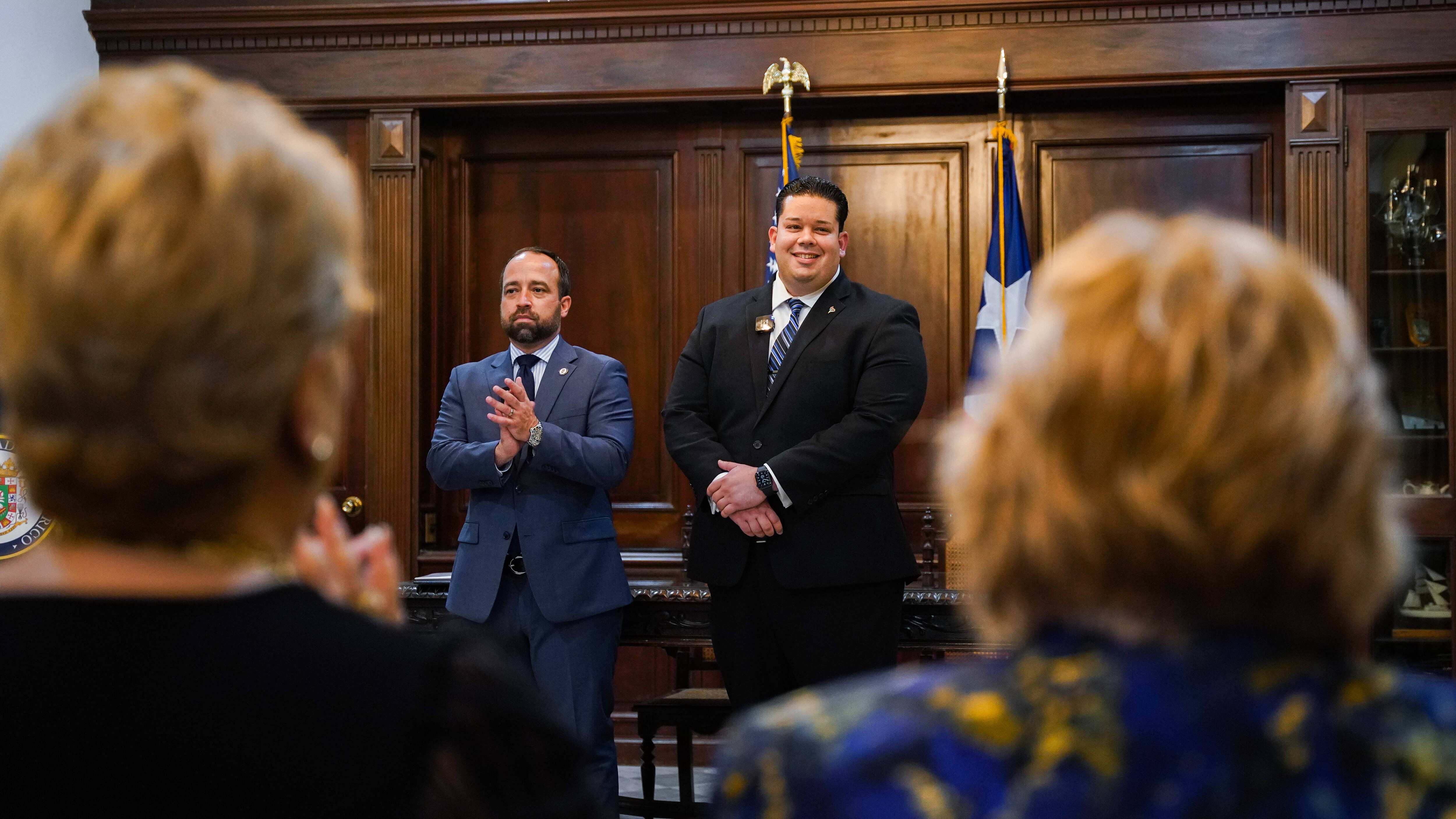 El secretario del Departamento de Estado, Omar J. Marrero Díaz, junto al director ejecutivo de la Junta de Retiro del Gobierno de Puerto Rico, Luis M. Collazo Rodríguez, reconocieron hoy la contribución de los pensionados y de las entidades que los representan, durante la ceremonia de entrega de la Proclama de la Semana del Pensionado del Gobierno de Puerto Rico, la cual se celebra del 10 al 16 de octubre.