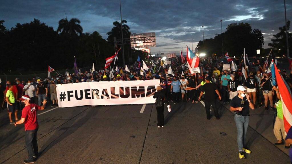 Miles de personas marcharon en Hato Rey contra LUMA Energy y su manejo de los sistemas de transmisión y distribución de electricidad en Puerto Rico y exigieron la cancelación del contrato entre el gobierno de Puerto Rico y la empresa.