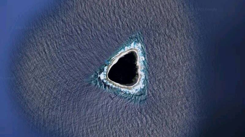 La isla, la cual parece una gran mancha negra, fue catalogada como una especie de “agujero negro” en medio del mar.