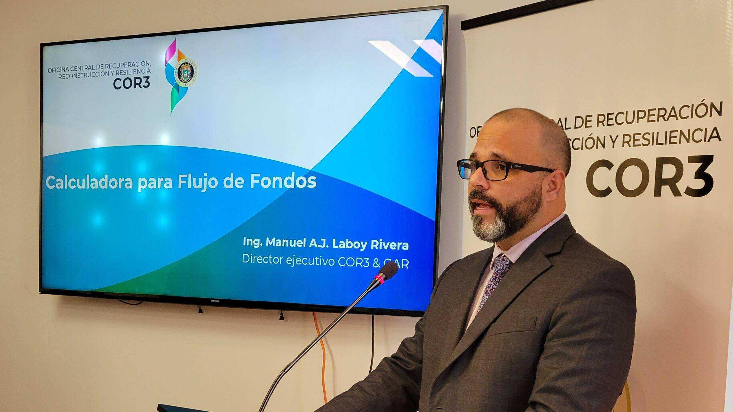 El director ejecutivo de la Oficina Central de Recuperación, Reconstrucción y Resiliencia (COR3, por sus siglas en inglés), Manuel Laboy Rivera, anunció el martes, la disponibilidad de la Calculadora para Flujo de Fondos con el propósito de proveer a los subrecipientes herramientas para el manejo efectivo de los recursos en el desarrollo de los proyectos de reconstrucción.