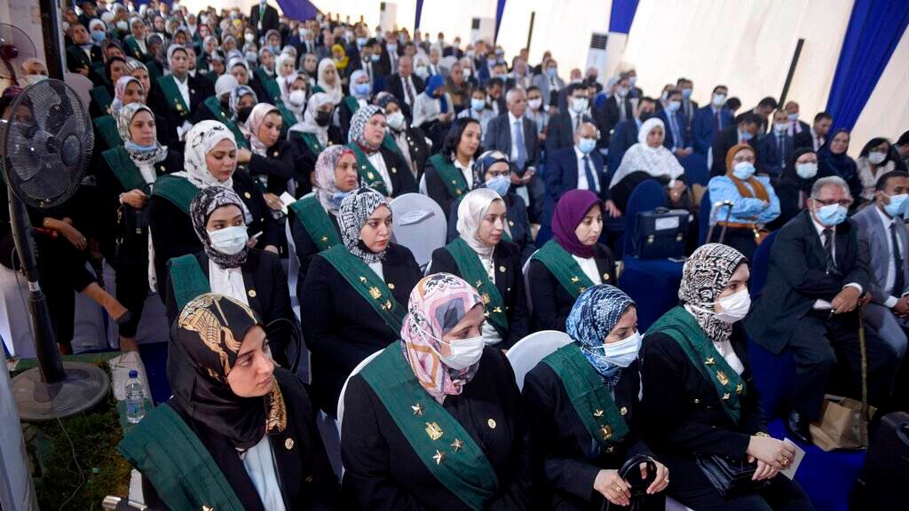 Las 98 mujeres fueron juramentadas ante el jefe del consejo, el juez Mohammed Hossam el-Din, en un evento en El Cairo.