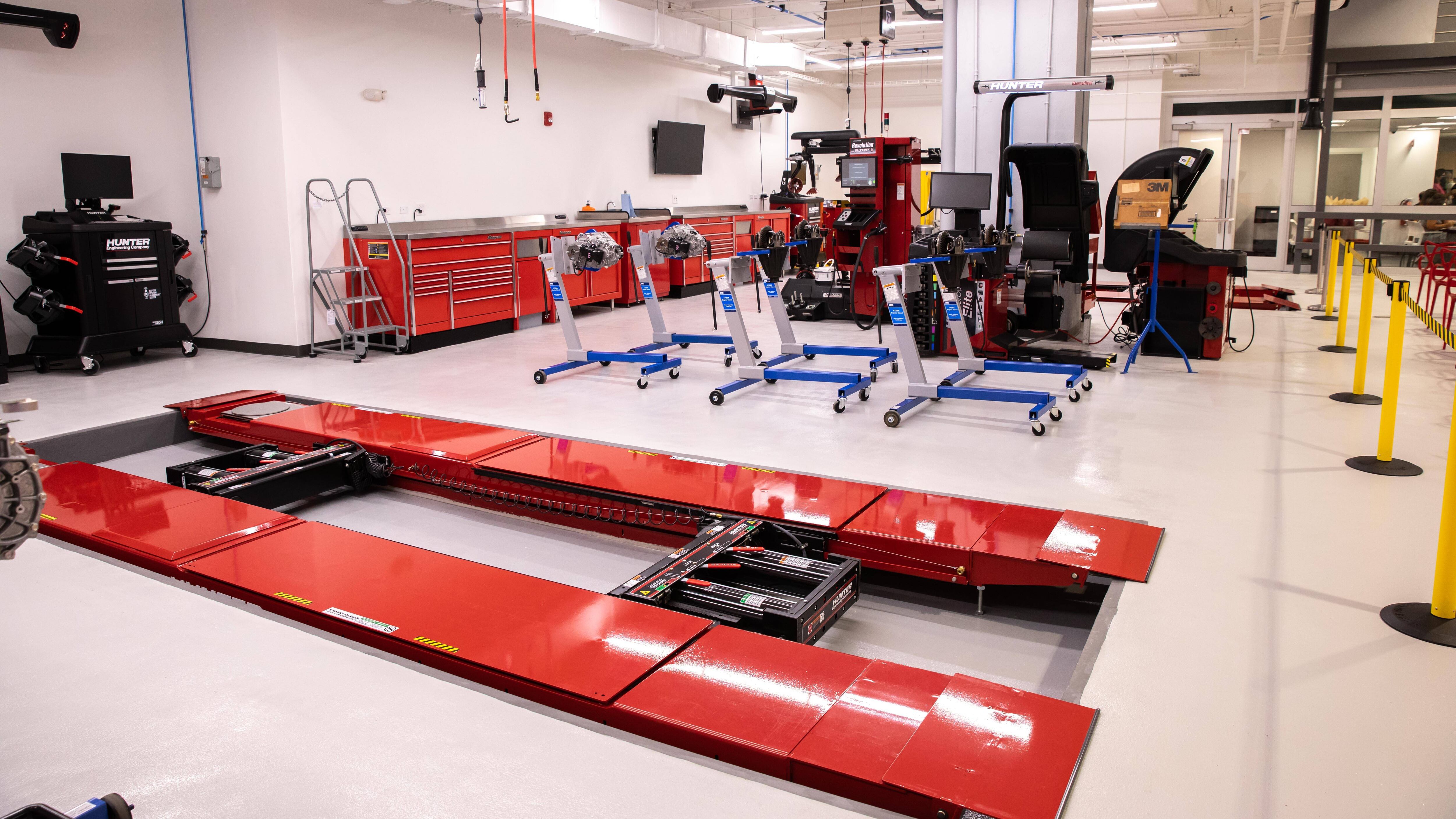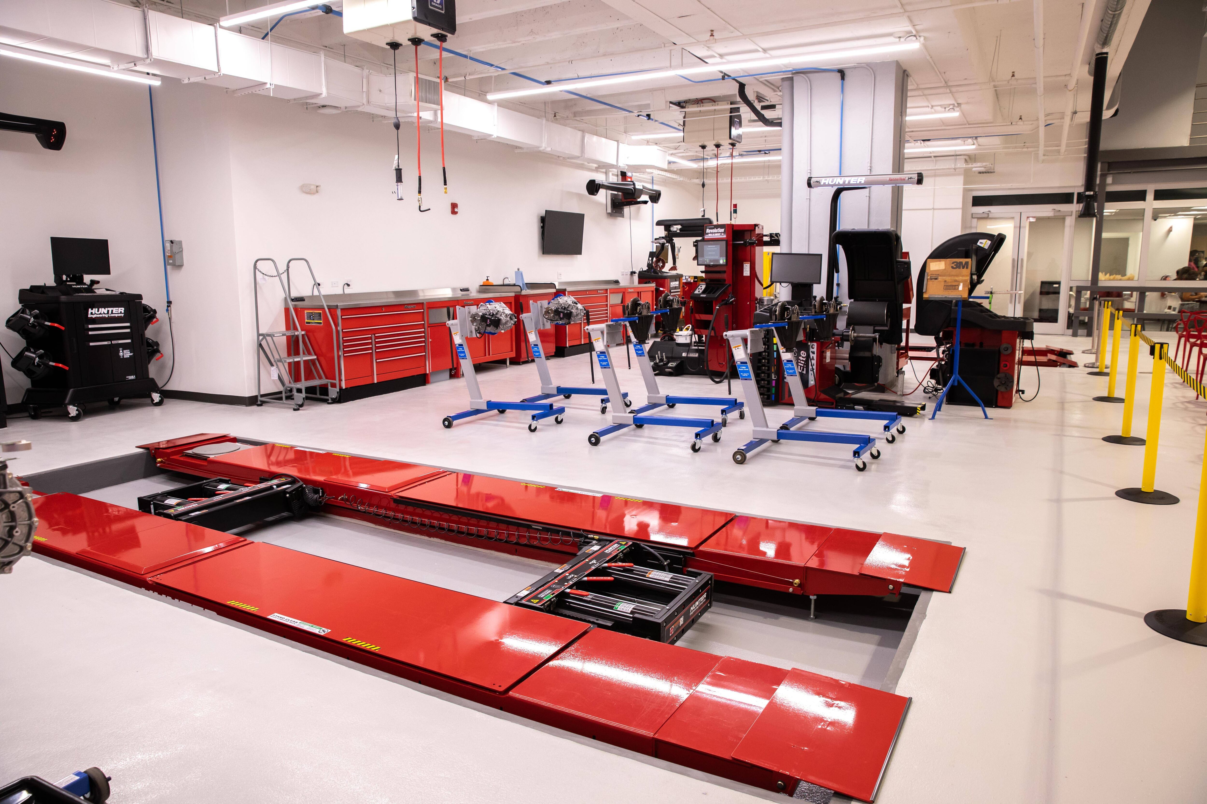 En Centro de Adiestramientos cuenta con un Salón Industrial, diseñado para ofrecer cursos presenciales mediante el uso de recursos audiovisuales de alta tecnología combinados con la experiencia práctica que permite a los estudiantes interactuar con componentes de los vehículos en tiempo real. Además, tiene un moderno Taller, que cuenta con cinco bahías equipadas con todas la utilidades, herramientas y equipos requeridos para intervenir con un vehículo efectivamente. El Taller cuenta, además, con dos rampas de alineamiento de última generación y una estación de montura y balance de gomas que cuenta con los equipos más modernos y sofisticados de la industria. Además, está equipado con un sistema de ventilación y acondicionamiento de aire.
