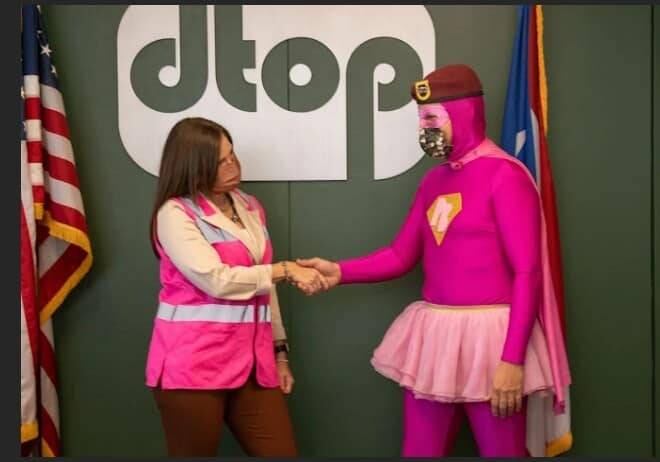 El Departamento de Transportación y Obras Públicas se reunió con la persona que se hace llamar Pink Bubbles Superhero, en un esfuerzo para arreglar las carreteras de Puerto Rico.