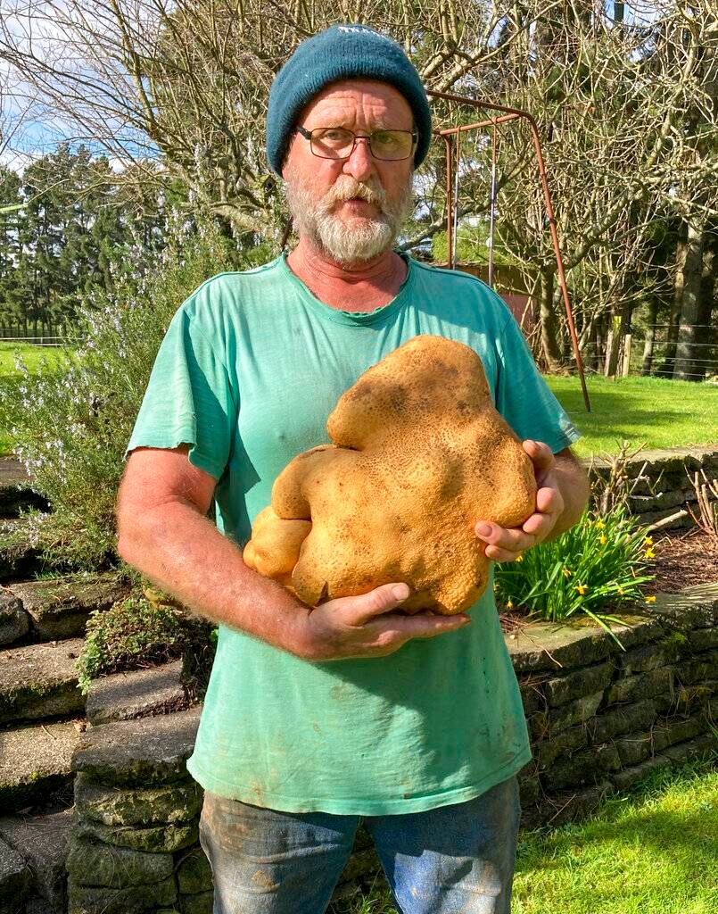 En las semanas que siguieron al descubrimiento, el tubérculo se ha vuelto una celebridad en el área de la granja de la pareja cerca de Hamilton. Ellos la nombraron Doug, un juego de palabras con el término inglés para cavar. Colin incluso construyó un carrito para llevar la papa.