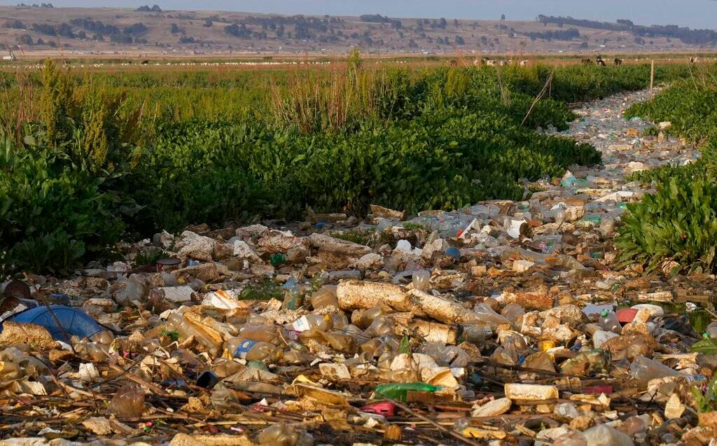Un burro muerto tranca el paso del riachuelo en una pampa pantanosa donde pastan vacas con sus pezuñas sumergidas en el barro. En un puente de cemento se amontona basura y botellas de plástico, incluso una cruz de madera que las aguas arrastraron desde algún cementerio. El paisaje rural parece idílico con los nevados andinos al fondo, pero no hay aves, no se escuchan pájaros y el aire huele fétido.