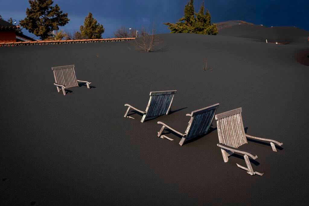 Un columpio. Una bandeja con vasos dejada afuera al escapar. Todo desaparecerá y quedará enterrado debajo de las cenizas del volcán de la isla La Palma.