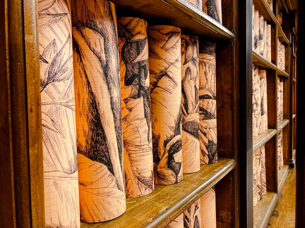 El artista de Roma Pietro Ruffo, para quien los mapas y la migración son temas habituales, fue invitado a diseñar una exposición específica para una de las salas de la biblioteca, que transformó en un bosque tropical. En otra sala, Ruffo diseñó una versión contemporánea de uno de los mapas antiguos del Nilo de la Biblioteca.
