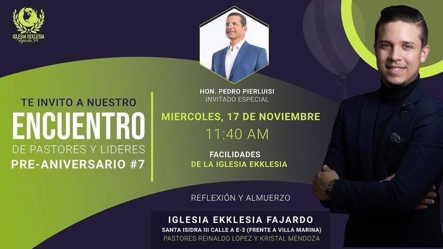 El gobernador Pedro Pierluisi canceló su participación de una actividad que estaba pautada para el próximo 17 de noviembre en la Iglesia Ekklesia en el municipio de Fajardo y de la que es pastor Reinaldo López.