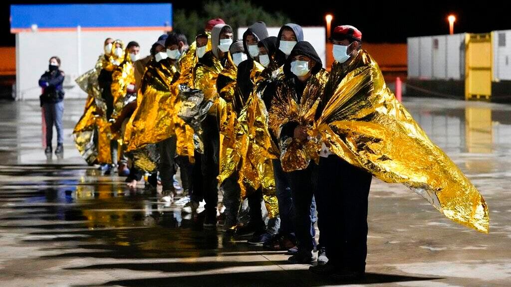 Un rescate empezó el sábado por la noche y terminó el domingo temprano, cuando 303 migrantes, que estaban empapados y temblando, llegaron a puerto de Roccella Jonica en la región de Calabria.