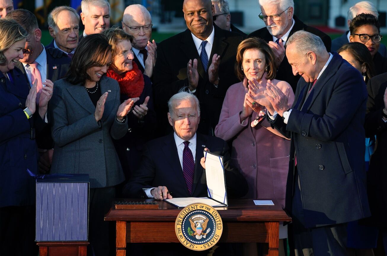 El presidente estadounidense Joe Biden firmó hoy, lunes, una iniciativa de ley de infraestructura de $1 billón en los jardines de la Casa Blanca.